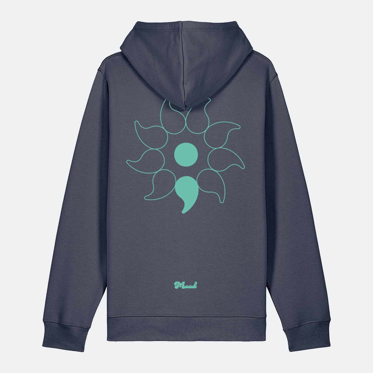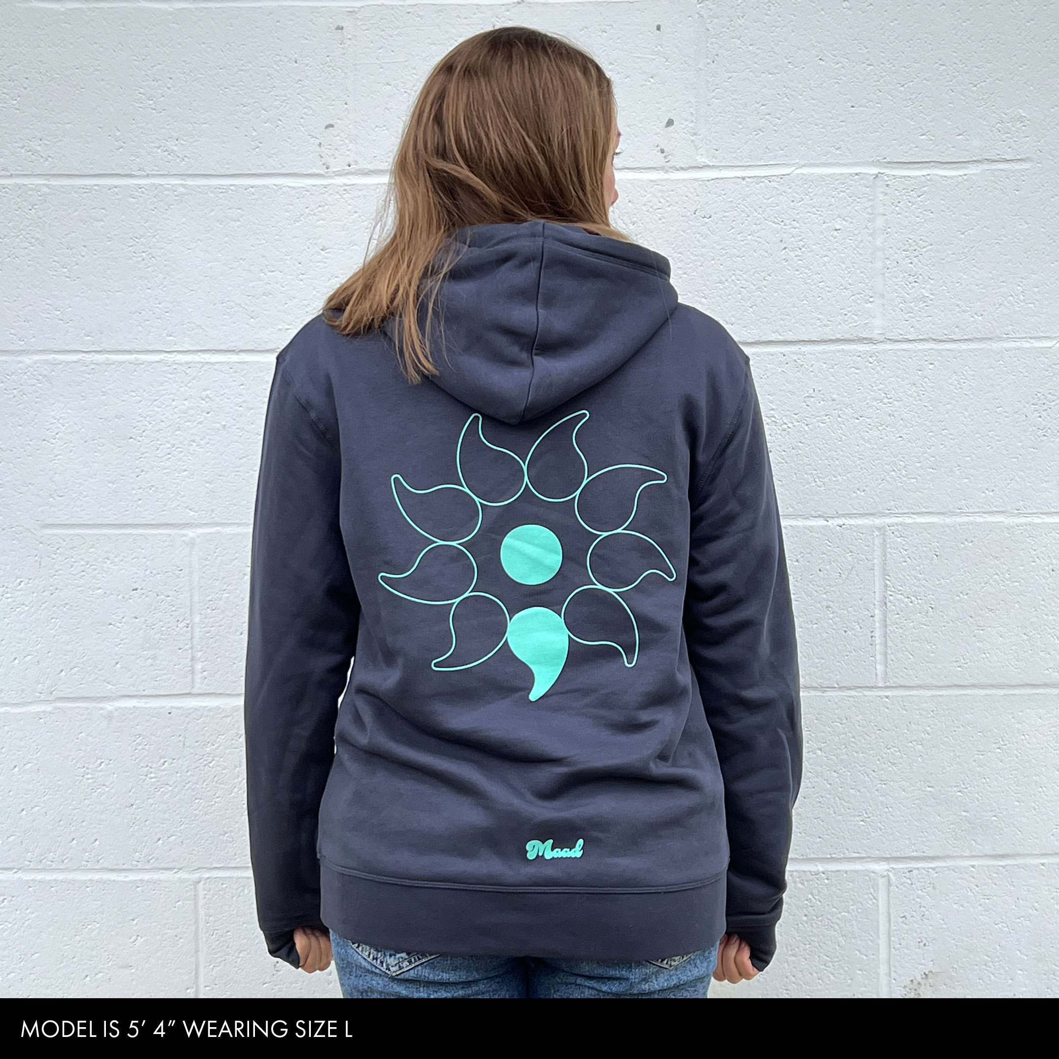 Our Peace design has a distinct 70s vibe with retro type and a cool stylised flower motif, created using our signature semi-colon. So the message is subtle yet clear on this one…solidarity for mental health awareness, hope and personal growth.