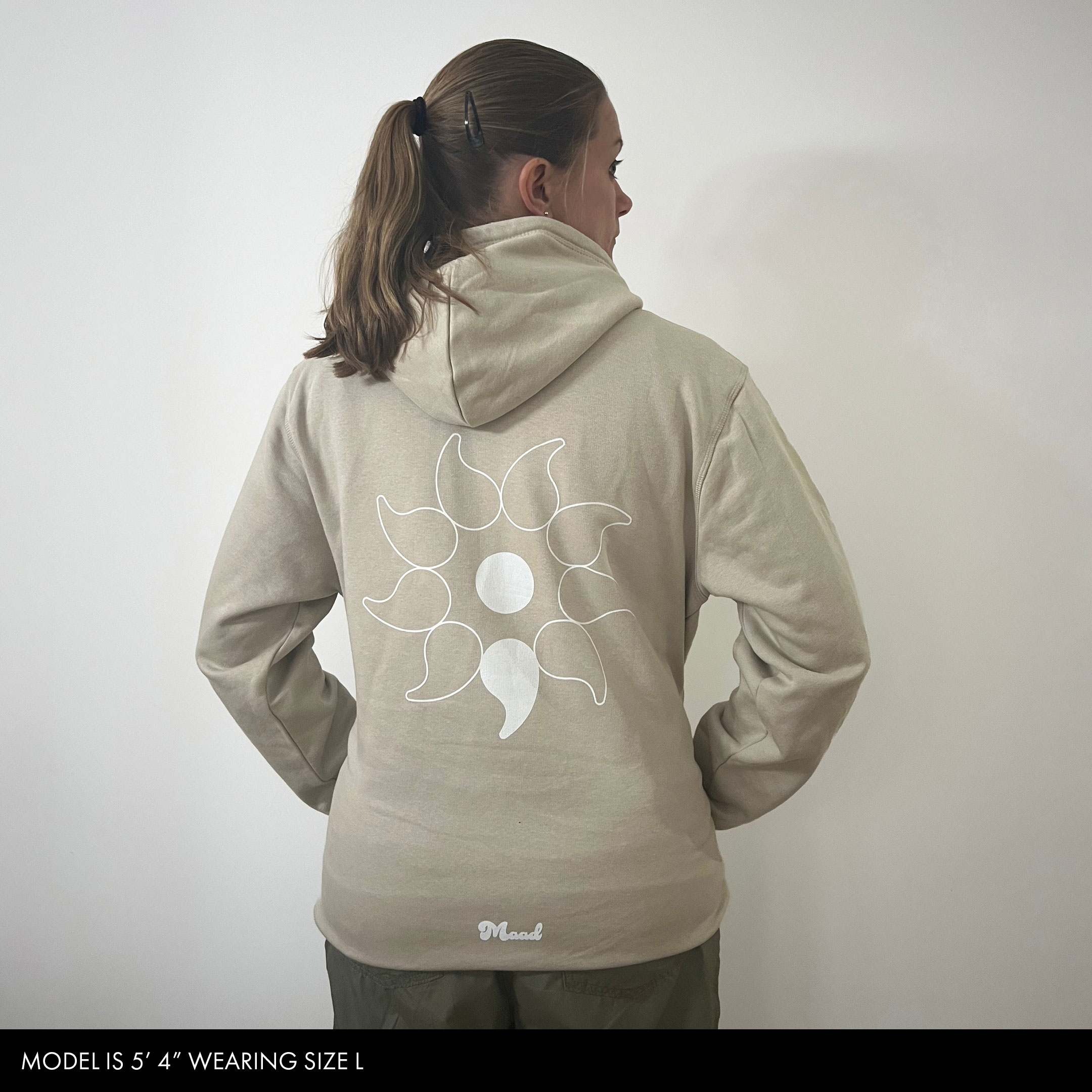 Our Hoodies run true to size, so if you want a bit of a loose vibe, go up a size, for big and sloppy maybe go up two sizes. Our model is height 5' 4" wearing a size L.