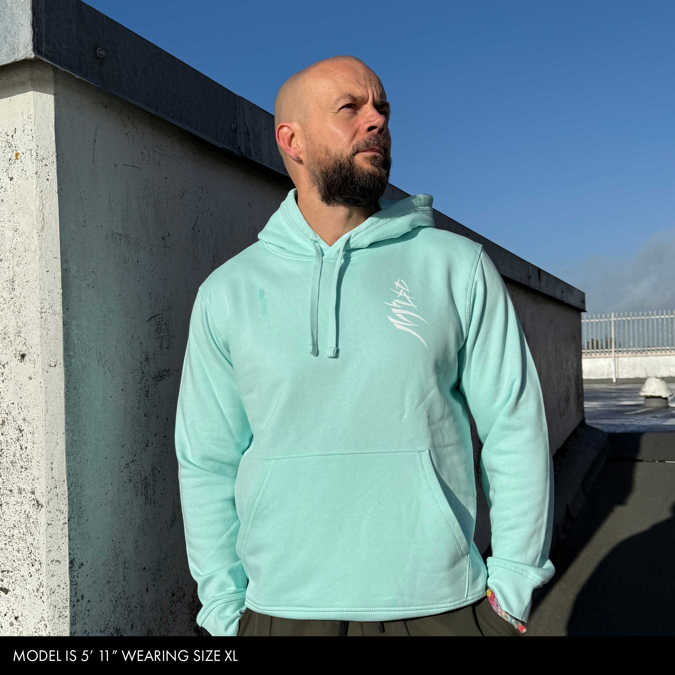 Our Hoodies run true to size, so if you want a bit of a loose vibe, go up a size, for big and sloppy maybe go up two sizes. Our model is height 5' 11" wearing a size XL.