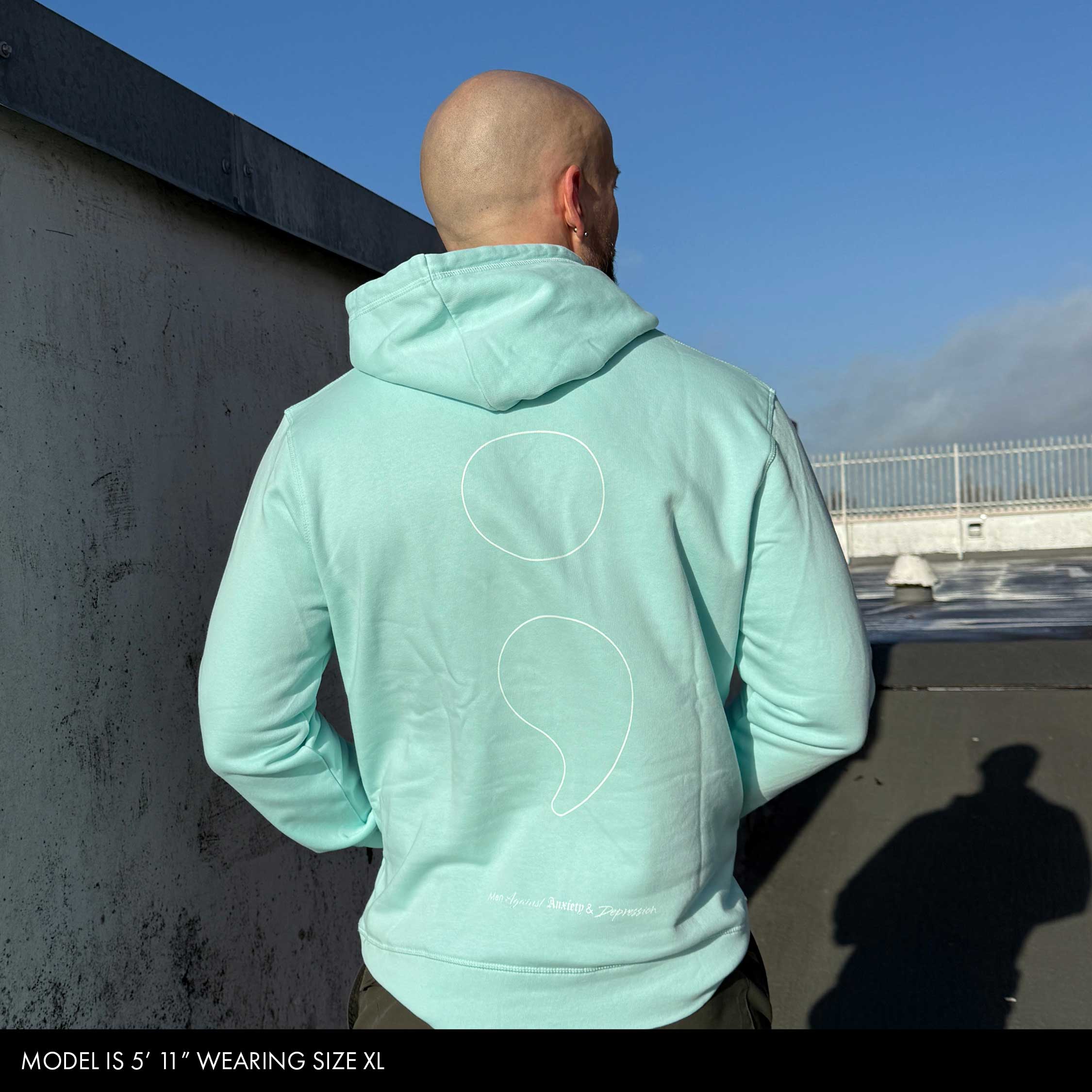 Our hand drawn Japanese style type, slightly abstract yet visually striking. Giving this piece a cool exotic vibe. Incorporating our signature semi-colon, large and unapologetic on the back to reinforce our solidarity for mental health awareness… your story isn’t over.