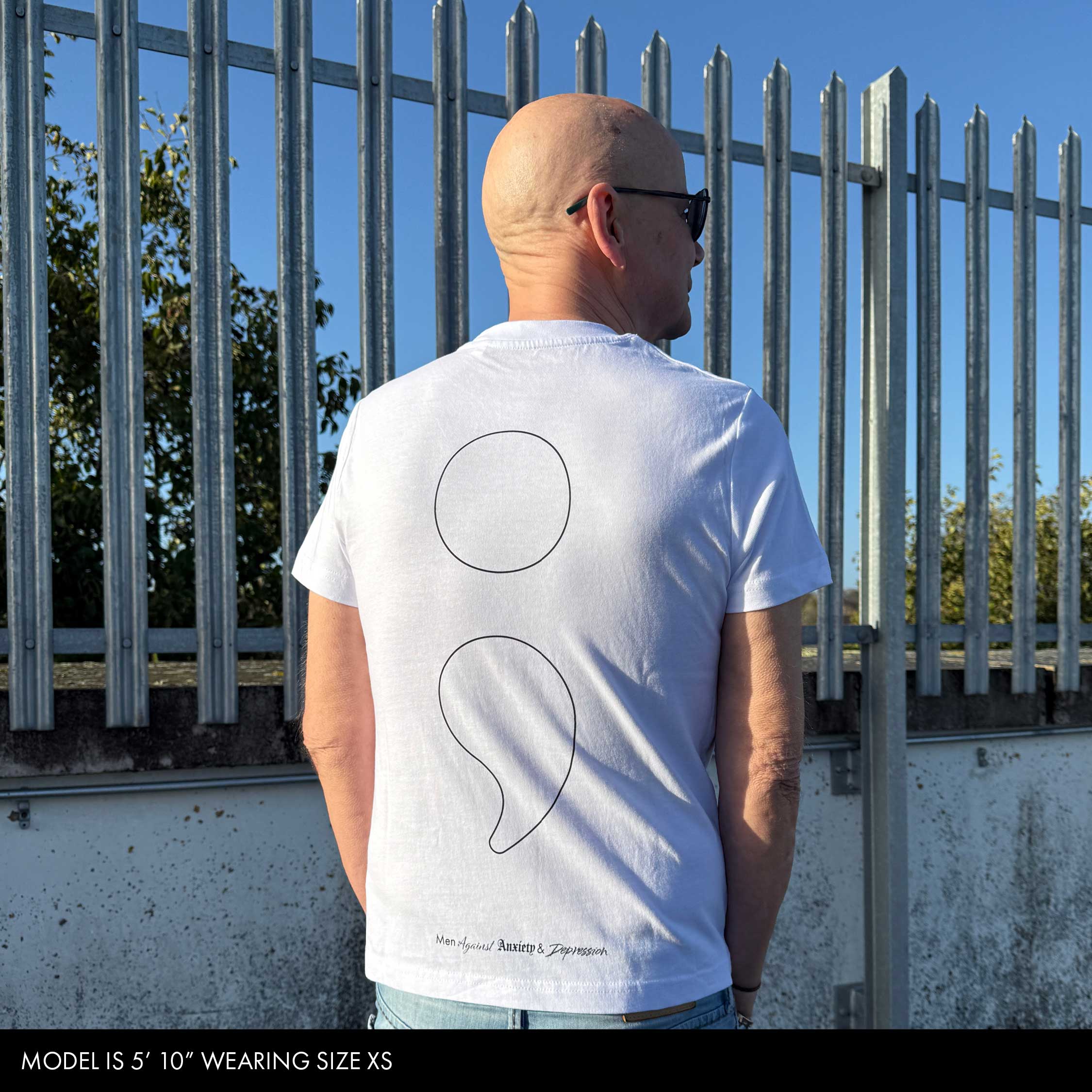 Our hand drawn Japanese style type, slightly abstract yet visually striking. Giving this piece a cool exotic vibe. Incorporating our signature semi-colon, large and unapologetic on the back to reinforce our solidarity for mental health awareness… your story isn’t over.