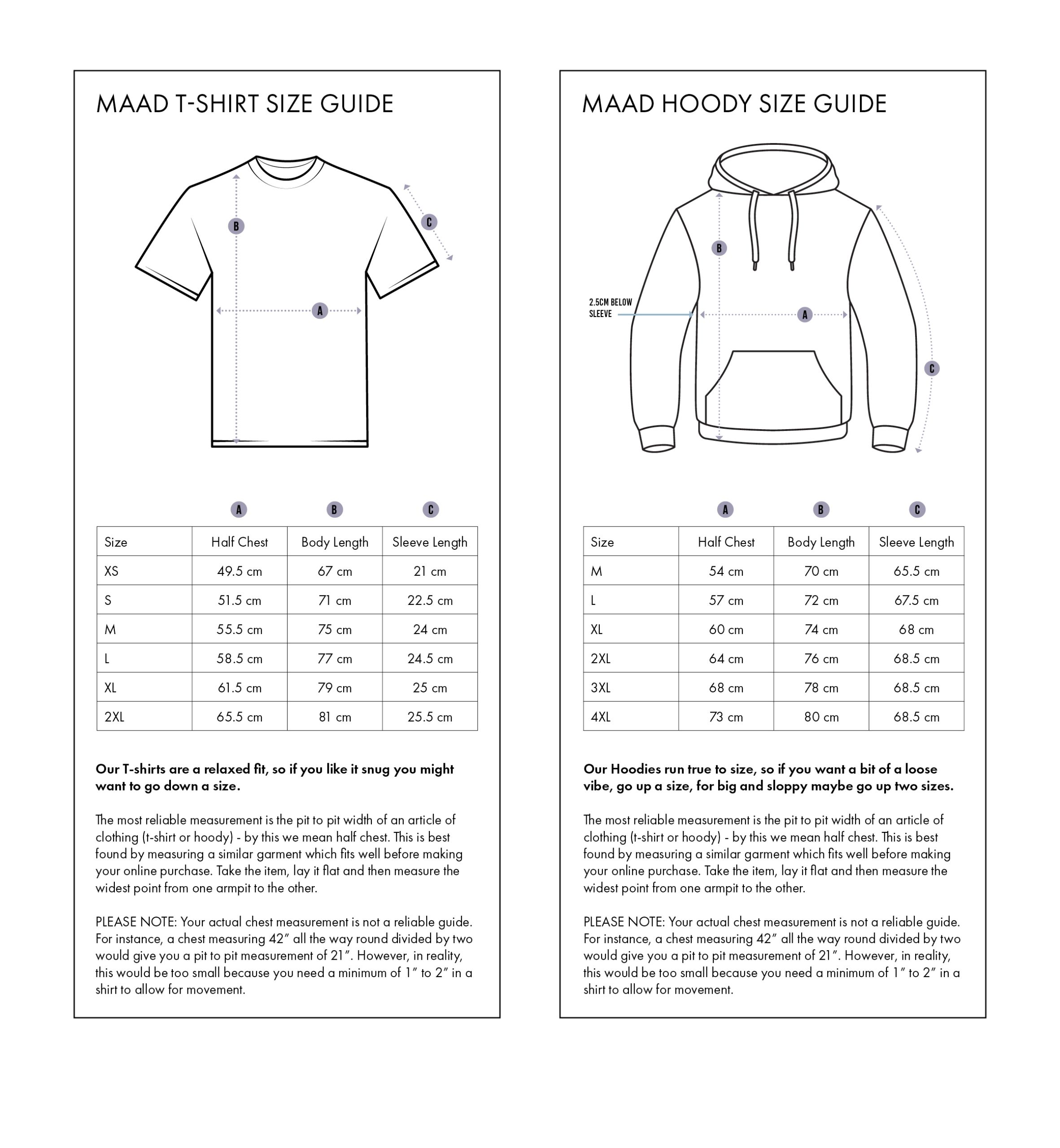 MAAD Hoody size guide