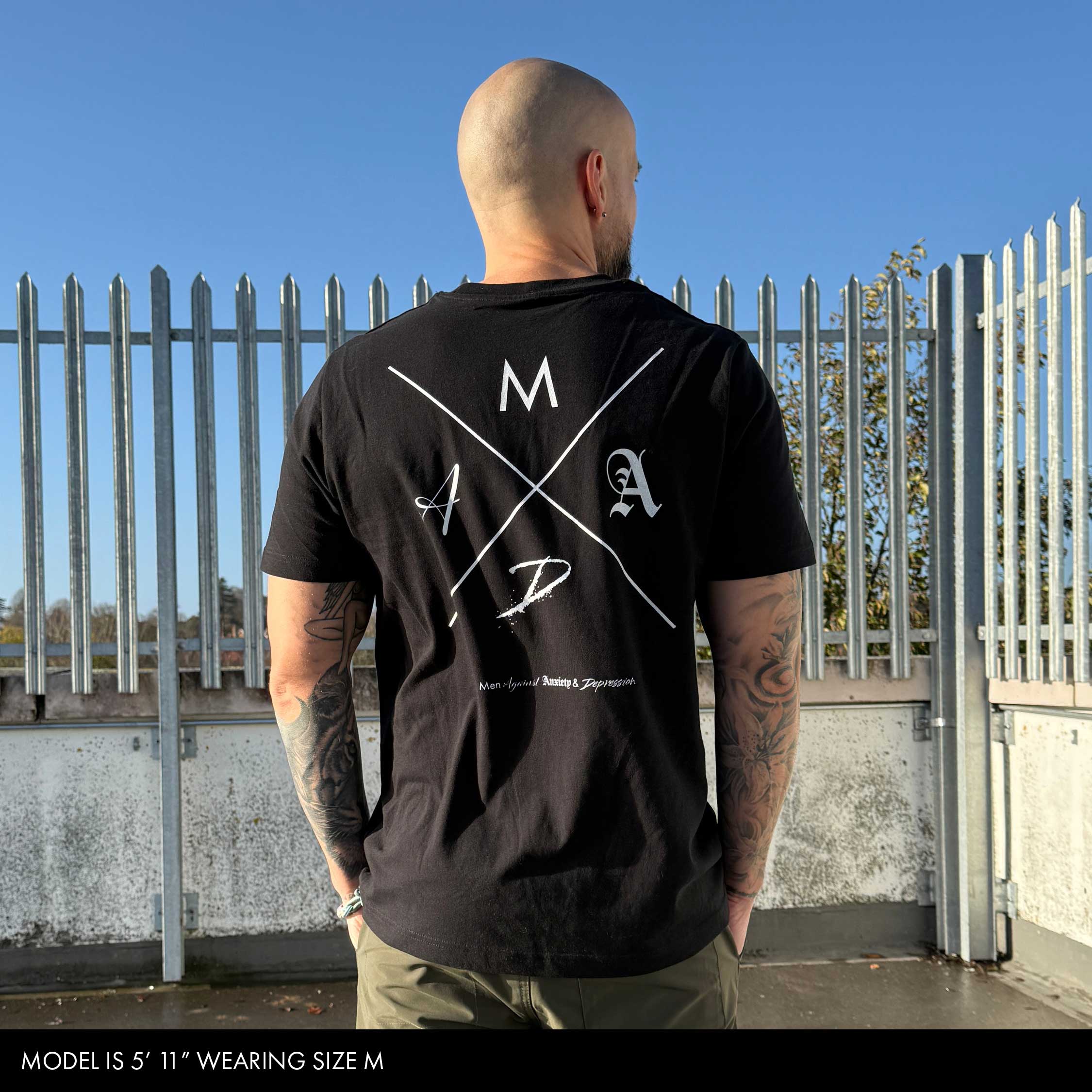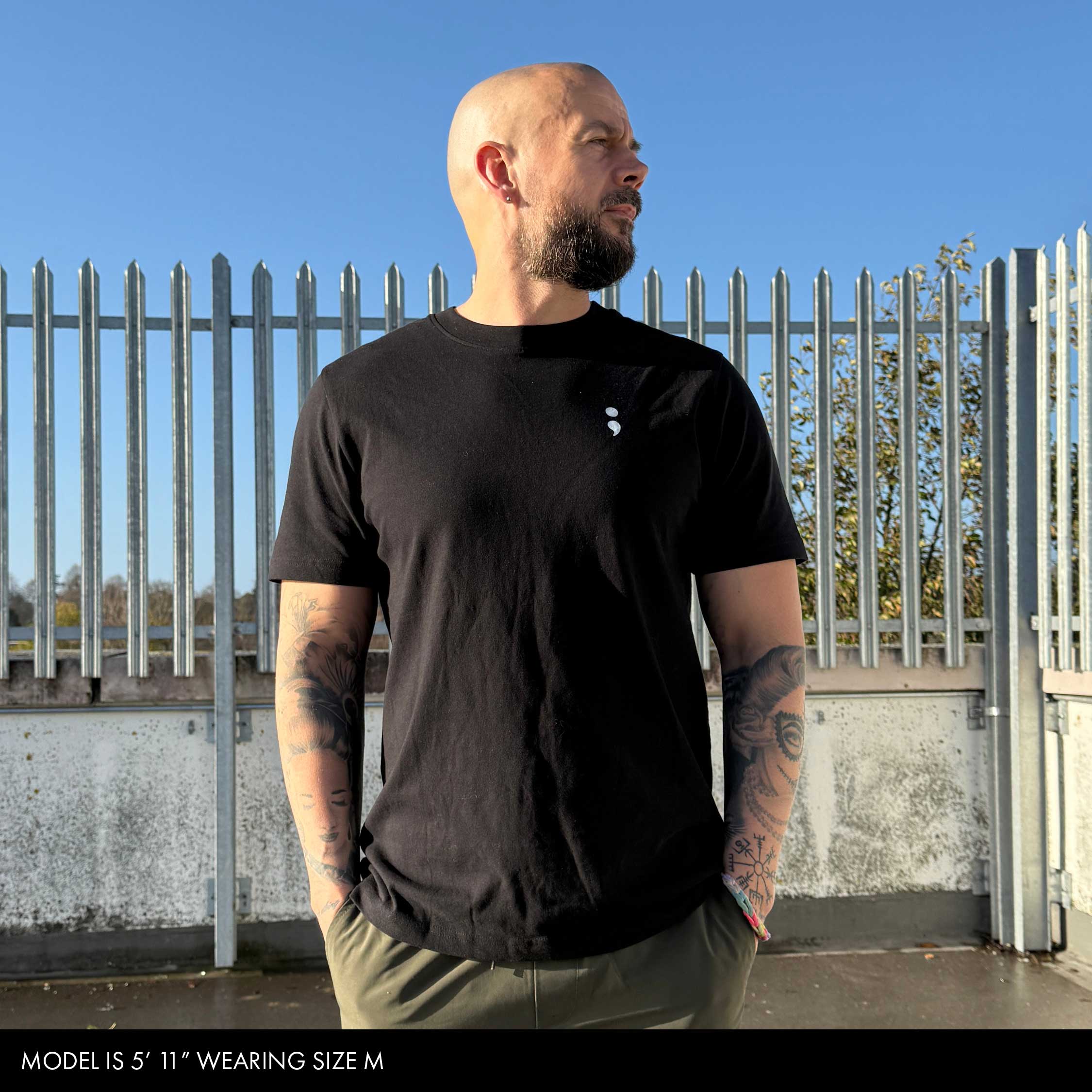 Bold, minimal and masculine, a simple cross with a mix of fonts symbolising our ever changing moods. Also incorporating our signature semi-colon graphic representing solidarity for mental health awareness… your story isn’t over.